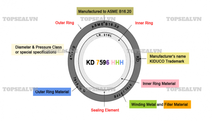 - Spiral Wound Gasket đầy đủ 3 vòng: vòng ngoài (outer ring), vòng điền đầy (filler) và vòng trong (inner ring).